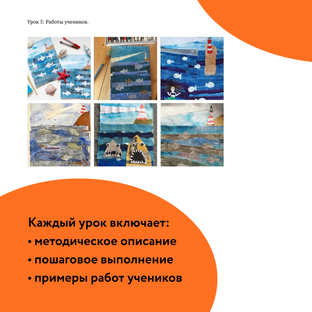 - Развивающие пошаговые задания с подробным описанием, фотографиями процесса и примерами работ.