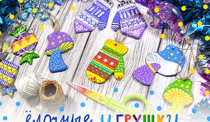 - Слепим неповторимые ёлочные игрушки из готовой самозатвердевающей глины.