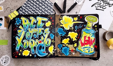 Курс для любителей экспериментов с цветом: создайте 6 стрит-арт иллюстраций, дудлы, надписи и стилизованных персонажей.