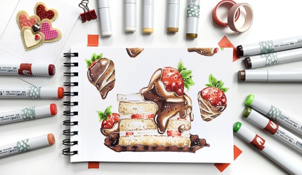 Освойте работу со спиртовыми маркерами и создавайте аппетитные иллюстрации с блеском глазури и текстурой выпечки.