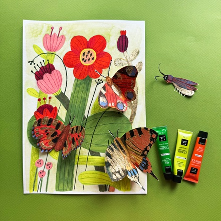 На этом уроке мы создадим классную, яркую иллюстрацию с цветами и бабочками. Для бабочек мы будем использовать поталь: чтобы они были яркими и волшебными!